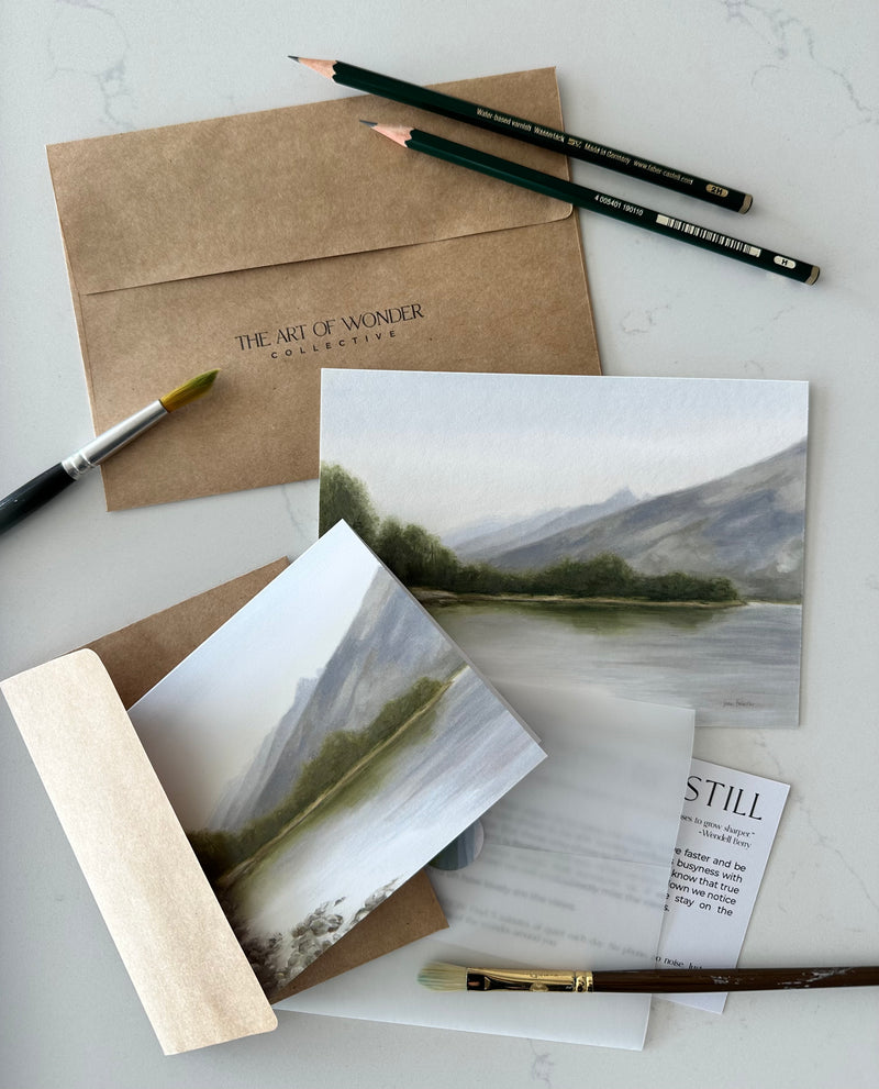 A monthly ritual of beauty and reflection. Each month, a new print arrives at your door - along with a card to inspire a moment of pause, and a greeting card to share that wonder with someone you love.